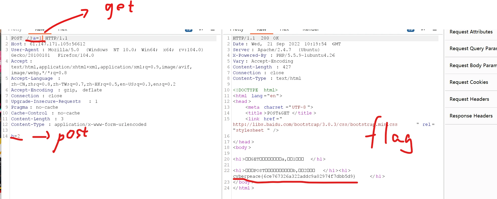然后在 reapter 里看回显。拿到 flag。